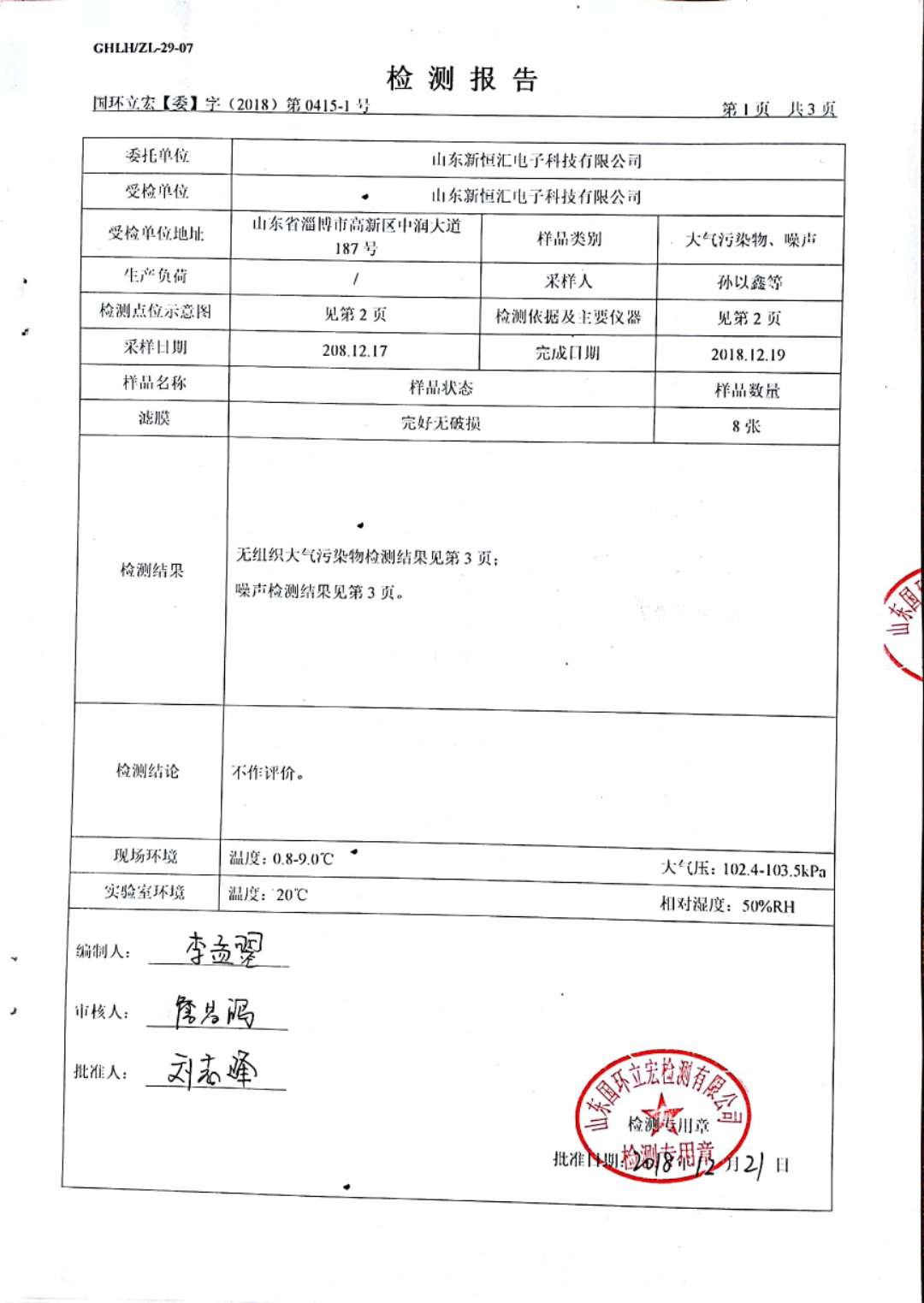 大氣污染物、噪聲檢測--新型IC卡芯片封裝框架生產及芯片